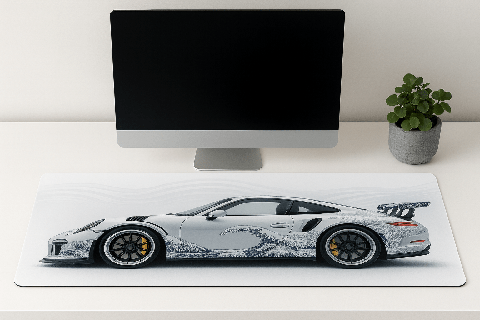 Tapis de souris XXL Style Porsche Blanc & Bleu Wave